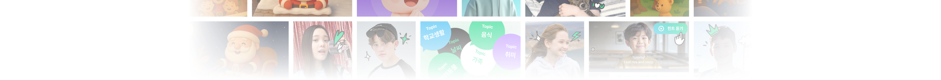 연습은 실전처럼! 영상 속 또래 원어민 친구와 대화하며 배운 영어 표현을 연습해요. 실제와 비슷한 환경에서 영어 말하기를 연습하며 더욱 학습에 몰입할 수 있어요.